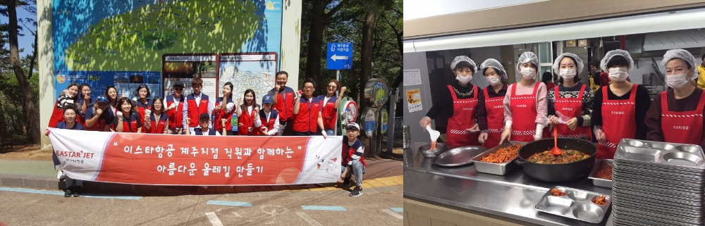 지난 6월에는 이스타항공 기내에서 특별한 이벤트로 고객들에게 추억을 선사하는 객실 이벤트팀이 협재 해수욕장, 용두암 공원 등 제주도의 대표 관광지에서 정화활동을 진행하기도 했다.