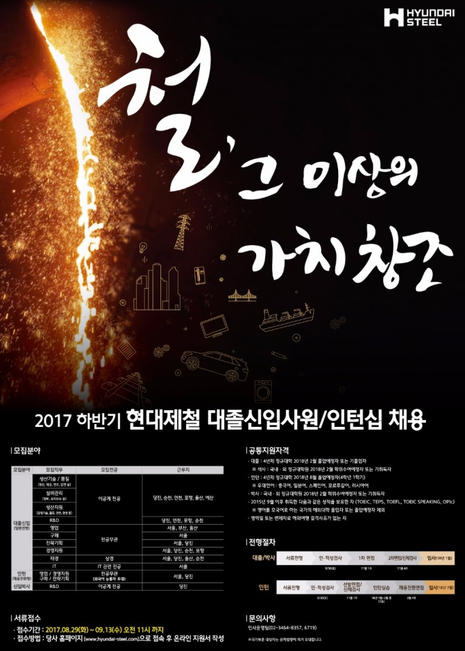 이미지 확대보기현대제철은 26일 홈페이지에 하반기 대졸 신입사원 및 인턴십 채용 서류 전형 합격자를 발표했다.