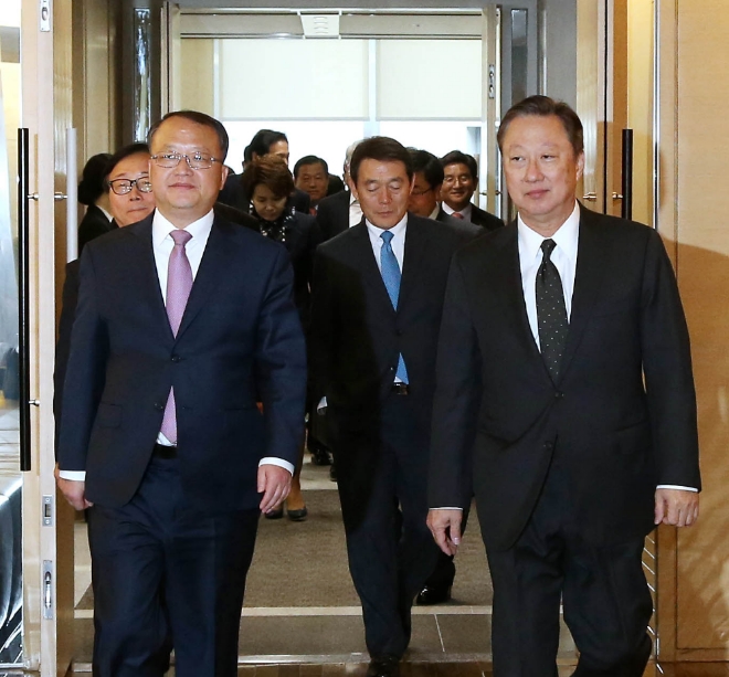 한편 이날 간담회에는 박용만 대한상의 회장을 비롯해 현정은 현대그룹 회장, 박진수 LG화학 부회장, 서민석 동일방직 회장, 이태종 한화 대표이사, 진영환 대구상의 회장, 이강신 인천상의 회장, 김상열 광주상의 회장, 최신원 수원상의 회장 등 대한·서울상의 회장단 20명이 참석했다.