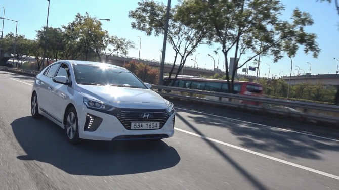 이미지 확대보기외관은 아이오닉 하이브리드 모델과 크게 다르지 않다.