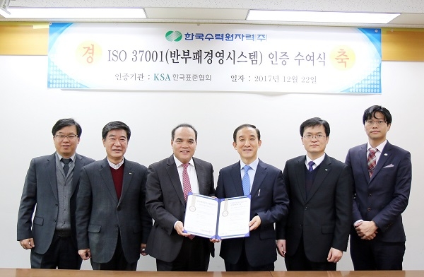 이날 유연백 표준협회 전무는 축사를 통해 “한수원은 ISO 37001 반부패경영시스템 인증 획득으로, 뇌물방지 및 부패행위 차단을 실현하는 국제적인 수준의 프로세스와 관리기준을 갖게 됐다”고 말했다.