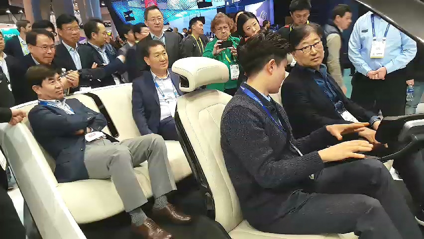 이후 윤 부회장은 자율주행 모듈의 앞자리에 직접 앉아 모비스 직원의 설명을 열심히 들었고 김현석 사장과 한종희 사장은 뒷자리에 앉아 담소를 나눴다.