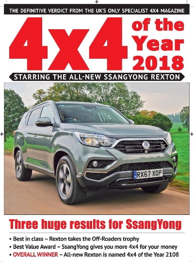 G4 렉스턴은 랜드로버 디스커버리(Land Rover Discovery), 레인지 로버(Range Rover), 지프 레니게이드(Jeep Renegade), 지프 랭글러(Jeep Wrangler), 스코다 코디악(Skoda Kodiaq) 등과 어깨를 나란히 하며 대상격인 ‘올해의 사륜구동 자동차(4X4 Of The Year 2018)’에 선정됐다. 대상을 거머쥔 G4 렉스턴은 2월호 커버 메인을 장식할 예정이다.