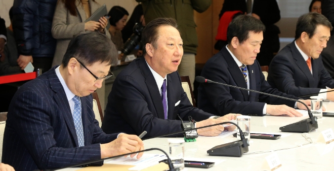 이미지 확대보기박 회장은 이날 오후 서울 중구 대한상의에서 진행된 ‘자유한국당-대한상의 정책간담회’에서 이같이 밝혔다.
