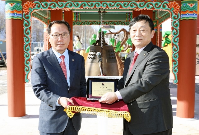 이미지 확대보기이날 행사에는 양원돈 유진그룹 사장과 김종진 문화재청장, 이희범 평창동계올림픽 조직위원장 등이 참석했다.