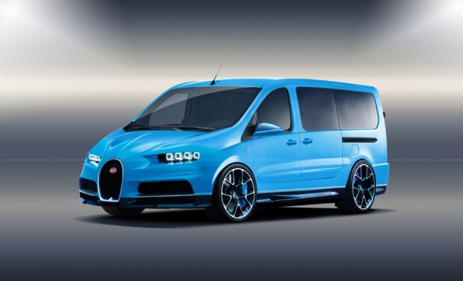 디지털 아티스트 니키타는 초고성능의 ‘부가티 시론’을 밴으로 재탄생하며 시그니처 색상인 파란색을 그대로 사용했다. 밴으로 변형했기 때문에 높아진 전고가 특징이다.