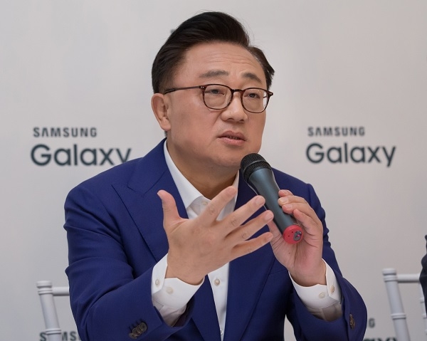 26일 스페인 바르셀로나에서 열린 기자간담회에 참석한 고동진 삼성전자 IM부문장 사장.
