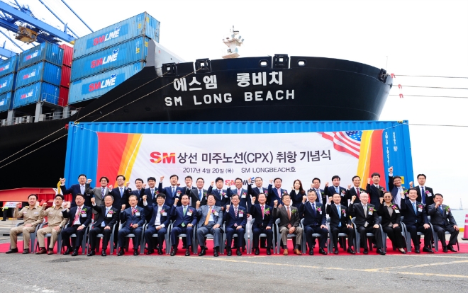 이미지 확대보기지난 2016년 12월 출범한 SM상선은 출범 4개월만인 2017년 4월 20일 부산 신항에 취항한 SM 롱비치 호(SM LONG BEACH)를 시작으로 미주서비스를 개시했다.