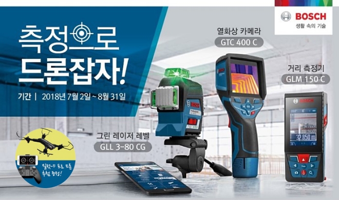 보쉬 전동공구 박진홍 사업부문장은 “스마트 측정공구 3종은 보쉬의 앞선 커넥티비티 기술이 적용되어 작업 효율성이 높은 보쉬 측정 삼총사로서 이미 사용자들의 뜨거운 관심을 받고 있다”며 “보쉬의 스마트 솔루션 기능을 선호하는 소비자 분들을 위해 스마트폰으로 조정할 수 있는 드론도 얻을 수 있는 특별한 이벤트를 기획했다”고 전했다.