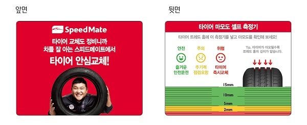 한편, 스피드메이트는 작년 8월 타이어 무상점검 캠페인을, 올 4월 타이어 건강검진 캠페인을 시행했다.