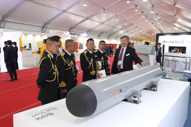 특히 실물 크기로 전시되는 ‘청상어’는 항공기, 헬기 등 다양한 플랫폼에 탑재될 수 있는 대잠 경어뢰로 해외 시장에서도 많은 관심을 갖고 있어, 국제관함식에 참가하는 46개국 해군관계자들의 높은 주목을 받을 것으로 기대된다.