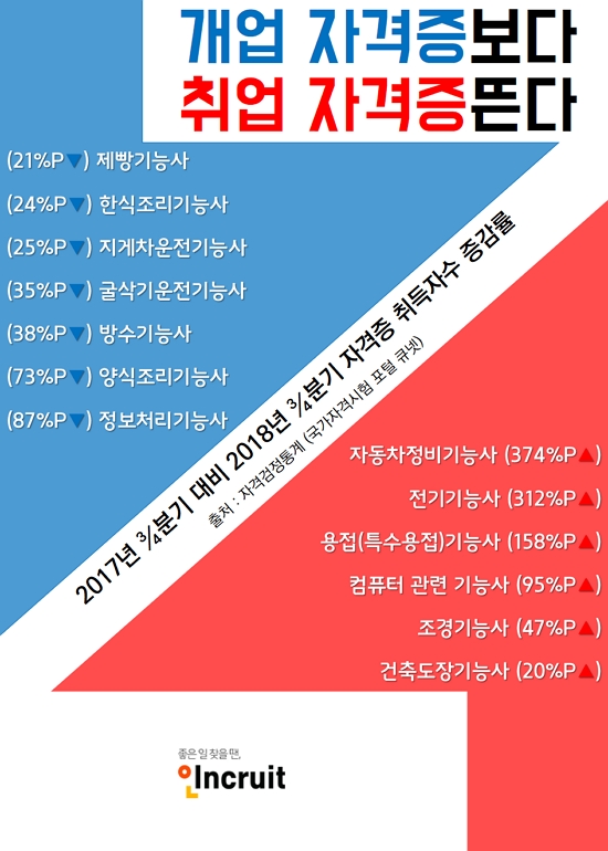 인크루트 서미영 대표는 “취업난의 대안, 전문성의 보강 혹은 은퇴와 퇴직 이후의 삶을 준비하려는 움직임으로 기능사 자격증 취득이 점차 활발해지는 가운데 무조건적인 취득보다는 업황의 변화와 취득 추이 등을 파악해 흐름에 대비해야 한다"라고 말했다.