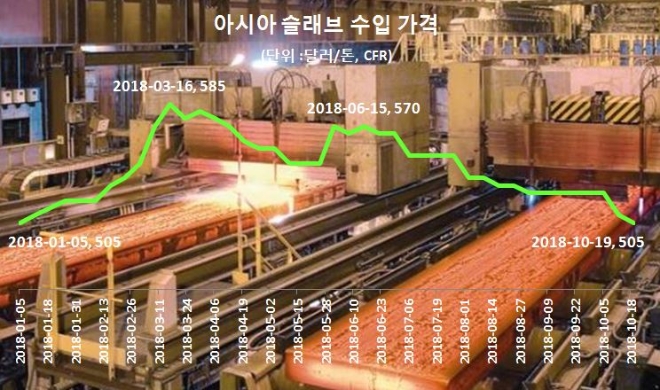 올 3월 585달러로 연중 최고치를 기록한 이후 조정을 거치면서 6월 570달러까지 회복됐지만 이후 약세를 면치 못했다. 높은 가격에 대한 부담과 함께 열연 등 하공정 제품 가격이 하락한 영향을 분석됐다.