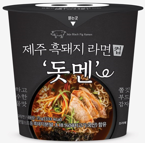 이미지 확대보기제주 흑돼지 컵라면 ‘돗멘’은 돼지를 뜻하는 제주어 ‘돗’과 라면의 ‘멘’을 합성했다.