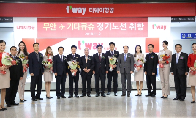 티웨이항공이 무안에서 출발하는 일본 기타큐슈 노선의 운항을 시작했다.