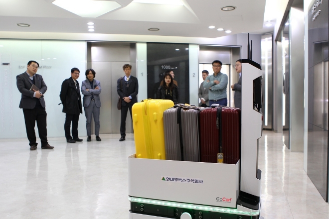 이미지 확대보기현대무벡스는 “기존 로봇 물류 서비스 사업은 층간 이동에 대한 제약을 가지고 있어 주로 평면 공간에서 이뤄졌지만, 이번에 추진하는 로봇 물류서비스는 승강기와 연동해 수직 이동의 제약을 극복한 사업 모델로 매우 큰 의미를 갖는다”고 밝혔다.
