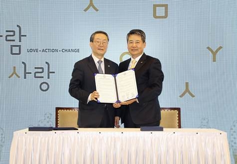 이미지 확대보기SK행복나눔재단는 15일 오전 한양대 올림픽체육관에서 한양대와 함께 사회혁신과 변화를 만들어내는 ‘체인지메이커(Changemaker)’를 양성하고자 MOU를 체결했다고 밝혔다.
