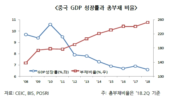사동철 연구원은 "만일 미국과 중국의 무역협상이 결렬될 경우 중국 경제는 경기하강 심화와 기업의 수익성 악화에 따른 신용리스크 확대로 부채위기가 증폭될 것으로 우려된다"고 지적했다.