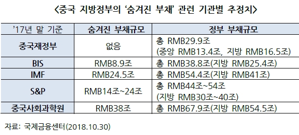 ▲가파른 부채 증가속도 및 성장둔화 속 부채규모 증가 ▲지방정부의 '숨겨진 부채'로 정확한 규모파악 불가 ▲2019년 지방정부의 채권과 부동산개발업체의 채무 만기도래 확대 ▲미∙중 무역전쟁 속 2019년 중국 기업의 회사채 디폴트 증가 전망 등이다.