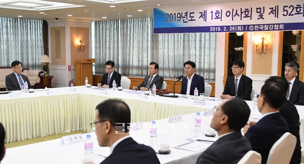 한국철강협회는 26일, 포스코센터 서관 18층 스틸클럽에서 최정우 회장 등 회원사 대표 20여명이 참석한 가운데 제52회 정기총회를 개최하고 2019년도 사업계획을 확정했다.