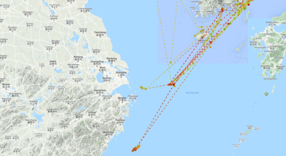이미지 확대보기마린 트래픽의 위치정보 자료는 일부 지역에 따라 수분 혹은 수시간 단위로 일부 항적이 누락되는 경우가 있지만 먼 거리의 항구로 항해하는 동안 단 한 차례도 항적이 포착되지 않는 경우는 AIS를 의도적으로 껐을 때가 유일하다고 VOA는 설명했다.