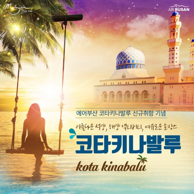 이미지 확대보기에어부산은 부산-코타키나발루, 대구-코타키나발루 노선을 대상으로 오는 8일부터 15일까지 항공권 특가 이벤트를 실시한다고 밝혔다.