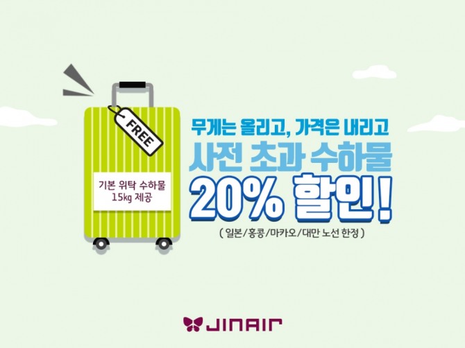 짐이 많은 고객을 위해선 사전 구매 수하물 할인 요금을 따로 운영중이다. 해당 요금은 공항에서 지불하는 것보다 최대 49%가량 저렴하다. 이번 이벤트를 이용하면 사전 구매 요금에서 20%를 추가 할인 받을 수 있다.