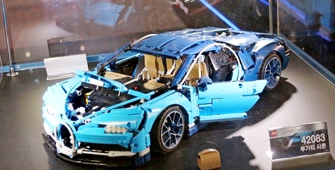 이미지 확대보기코엑스에 전시된 레고로 만든 부가티 시론.2019년형 부가티 ‘라 부아튀르 느와르’의 가격은 144억원으로 같은 사양의 모닝 1516대를 구매할 수 있다.