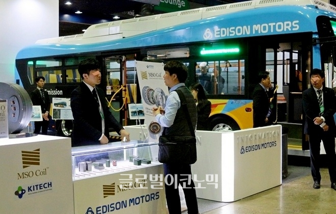 이미지 확대보기 (위부터)에디슨 모터스는 이륜전기차와 전기버스를, 엠비아이는 이륜전기차를 각각 선보였다.