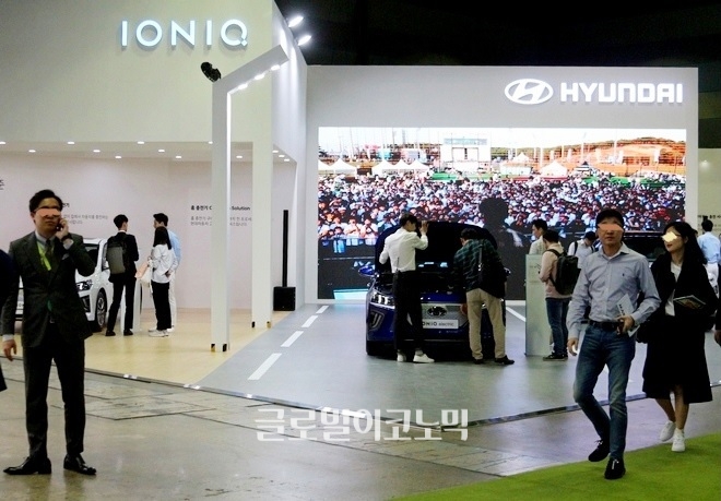 이미지 확대보기 (위부터)현대차는 전기차 아이오닉과 코나, 수소전기차 넥쏘 등을, 기아차는 전기차 니로와 쏘울 등을 각각 전시한다.