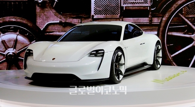 이미지 확대보기 독일의 슈퍼카 브랜드 포르쉐는 파나메라4 e하이브리드와 카이엔 e하이브리드, 미시오네(위) 등으로 관람객을 유혹한다.