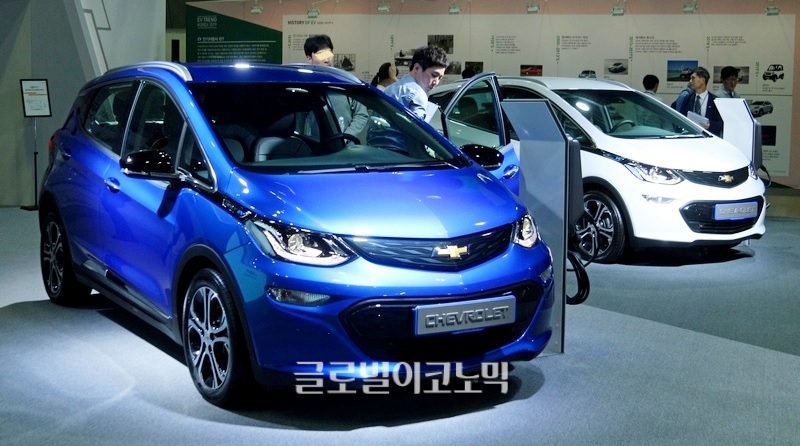 이미지 확대보기 한국GM의 대중브랜드 쉐보레는 전기차 볼트를 전시한다.