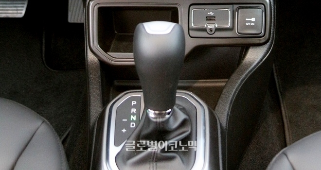 이미지 확대보기 대시보드 상단으로 올라온 송풍구, 조수석 콘솔함에 자리한 대형 손잡이, 12인치 액정표시장치(LED)를 둘러싼 플라스틱 재질, 돌출된 계기판 등이 차량 실내를 풍성하게 하고 있다. 계기판은 다양한 차량 정보를 담고 있다. 말뚝형 변속기의 기어노브가 검정 계통의 두 가지 색이 조화를 이룬 점이 새롭다.