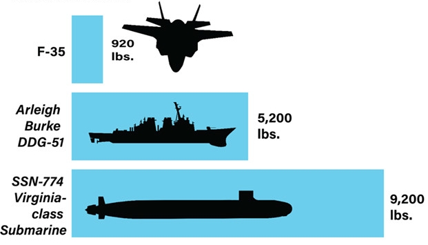 또 미국이 자랑하는 핵추진 잠수함 버지니아급 잠수함에도 각종 희토류 9200파운드(4170kg)가 필요하고 알리 버크급 이지스 구축함도 5200파운드(2360kg)의 희토류가 필요하다.