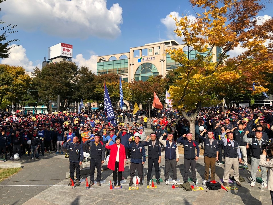 노조는 전날 전면파업에 이어 이날 오전 9시부터 7시간 부분파업에 들어갔다.