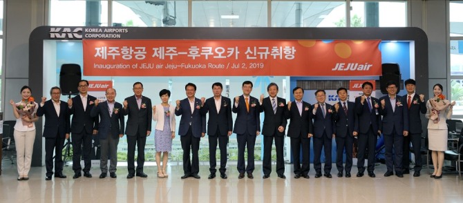 이번에 취항한 제주-후쿠오카 노선은 요일별로 운항 일정이 다르다. 화요일은 후쿠오카에서 낮 12시55분 출발해 제주공항에 오후 2시35분 도착하며 제주국제공항에서 오후 4시35분 출발해 후쿠오카공항에 오후 5시50분 도착하는 일정이다.