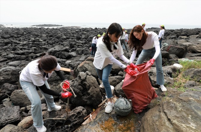이미지 확대보기진에어는 객실승무원 19명이 15일 제주시 한경면 수월봉 일대에서 환경 정화 활동을 펼쳤다고 16일 밝혔다.
