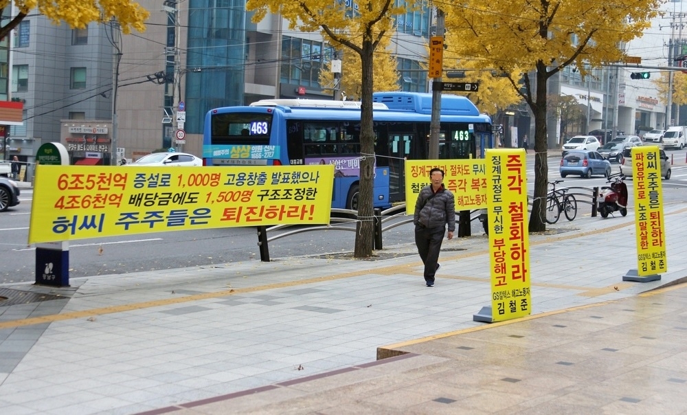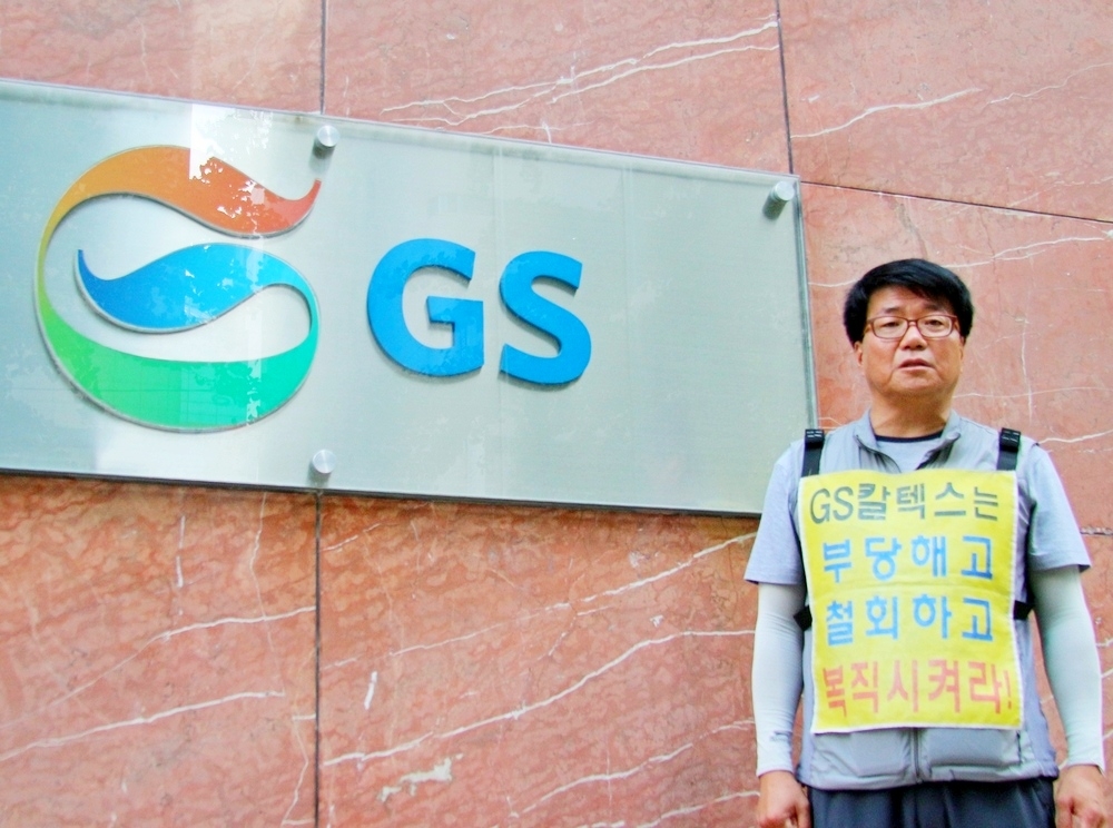 4일 노동계에 따르면 GS칼텍스 여수공장 부당해고 노동자 김철준(56) 씨가 지난해 11월부터 현재까지 서울 역삼동 GS칼텍스 사옥 앞에서 1인 시위를 펼치고 있다.