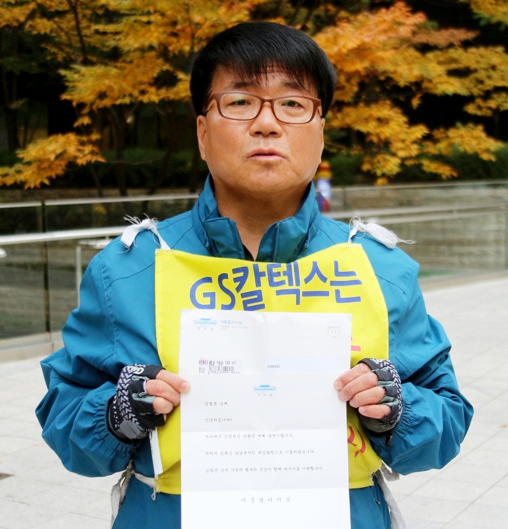 김 씨는 자신의 사연을 담은 A4 7장에 적어 2015년 7월 허진수 부회장(현 회장)에게 보냈지만, 역시묵북부답. 다만, 청와대는 김 씨가 올린 민원에 대해 지난해 11월 ‘담당 부서인 대검찰청으로 이첩했다’고 알려왔다.