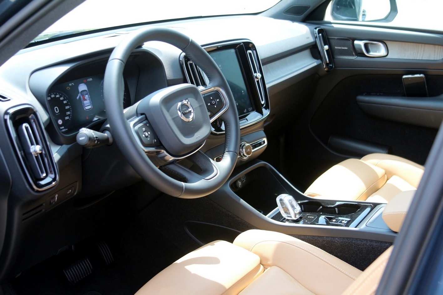10인치에 가까운 대형 LCD(액정표시장치)는 그대로지만 송풍구과 차량 조작버트, 크리스탈 기어 노브 등이 각각 깜찍하게 작아졌다. XC40 도어내 캐치는 큰 크기에 크롬으로 만들었다.