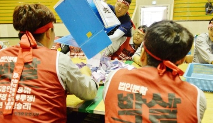 이미지 확대보기19일 현대중공업 노조는 쟁의대책위원회를 열고 21일 오후 2시부터 5시까지 전 조합원 파업을 결정했다. 노조는 파업하고 당일 오후 3시 울산 태화강역 앞에서 금속노조와 민주노총 주최로 열리는 집회에 참여할 방침이다.