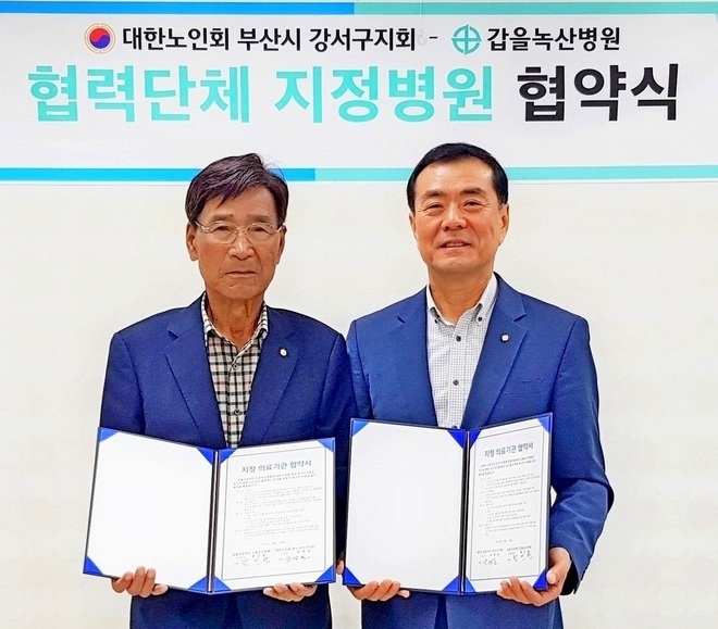 갑을녹산병원은 최근 대한노인회 부산광역시 강서구지회와 지정병원 업무협약(MOU)을 맺었다고 30일 밝혔다.