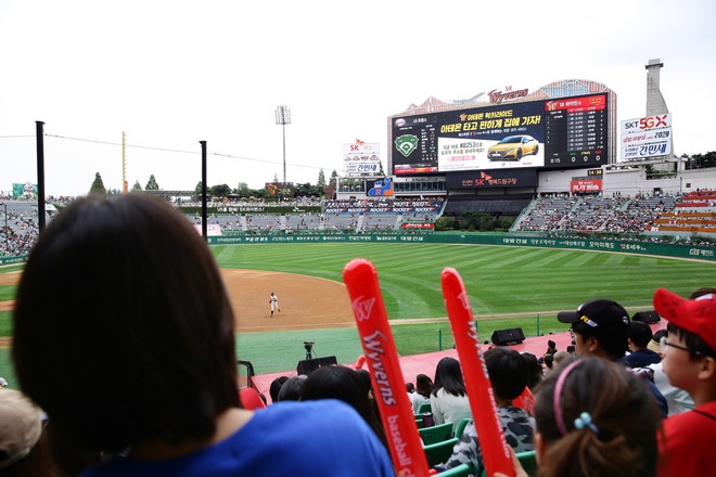 이미지 확대보기SK와이번스 응원석인 1루쪽에는 폭스바겐의 대형 엠블럼이 걸렸다. 사진=폭스바겐부문