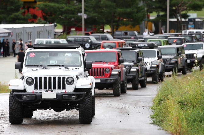 행사에는 300여팀이 참가했다. 지프 차량들이 행사장으로 속속 들어오고 있다. 사진=지프이미지 확대보기