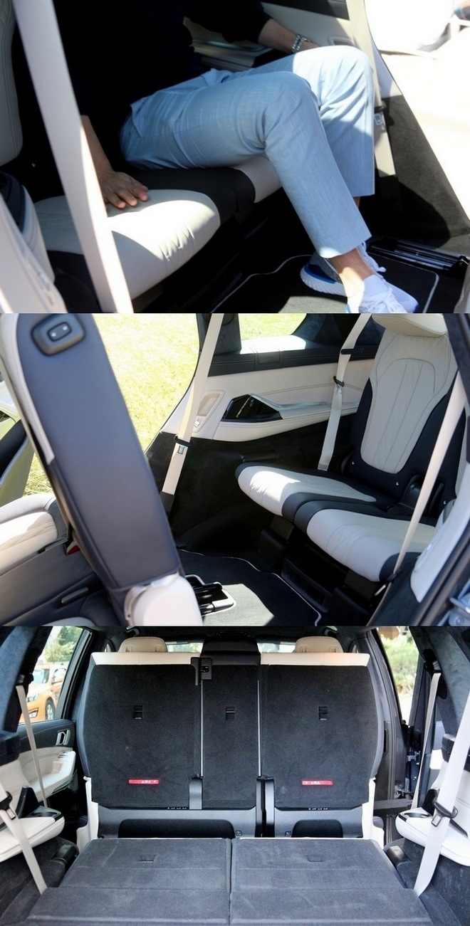 X7은 X시리즈 가운데 가장 넓은 실내 공간을 구현했다. 쿠페형 X6보다 더 큰 X5의 휠베이스가 1745㎜인 반면, X7은 3105㎜로 확대됐다. 2열은 앞으로 기울이고 3열을 접으면 2120ℓ까지 확보할 수 있어 야외활동에 부족함이 없고, 어지간한 원룸 이사도 가능하다. 2열 중앙에는 긴 짐을 실을 수 있게 한 통로(스키 쓰루)도 설치됐다.