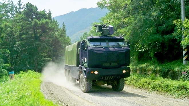5t 방탄 차량은 강인한 디자인의 방탄 캐빈과 적재함, 손쉬운 무기장착이 가능한 구조를 탑재했다.