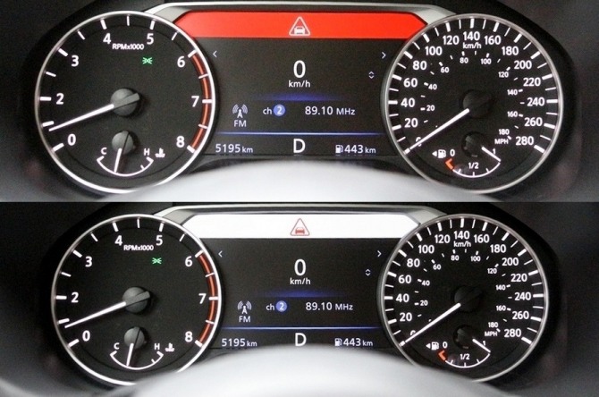 이들 기능은 계기판에 빨간 표시로 나타나고, 알티마 2.0 가솔린 터보가 추돌 직전까지 갈 경우 계기판 상단에 빨간색으로 경고를 낸다.