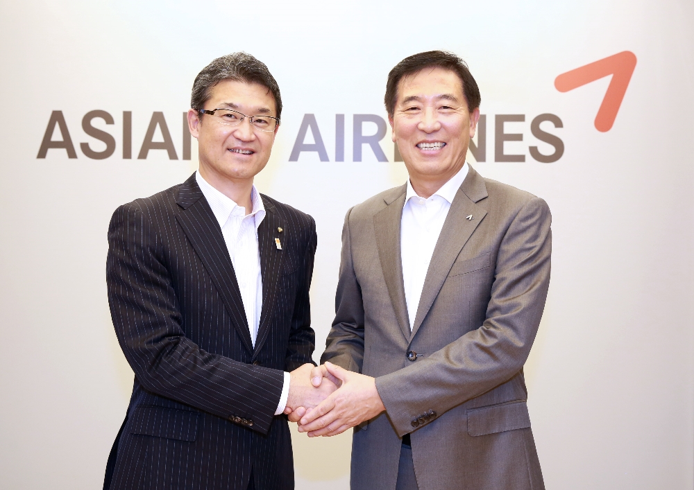 이미지 확대보기한창수 아시아나항공 사장은 지난 23일 서울시 강서구 시아나항공 본사를 방문한 코오노 슌지 일본 미야자키현 지사와만났다. 이날 모임에서 아시아나항공과 미야자키현은 경색된 한일 관계를 다시 회복시키기 위한 노력을 펼치기로 의견을 모았다.