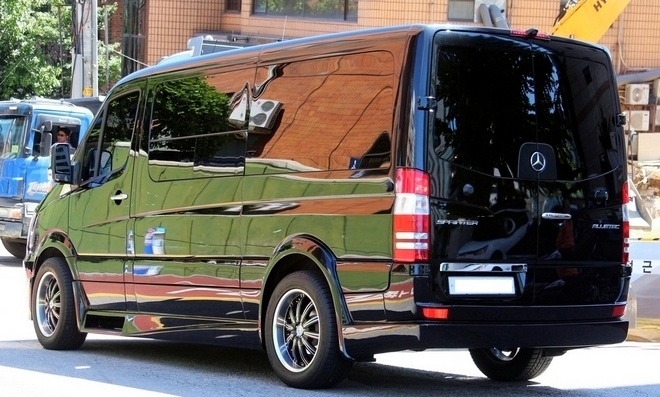 이미지 확대보기죽지 않는 Rev-9를 없앨 수 있는 무기를 확보한 터미네이터와 그레이스 일행은 하얀색 벤츠 밴을 타고 비행장으로 간다. 벤츠 밴이 비행기가 있는 곳까지 가는데 Rev-9는 밴을 공격하고, 카메라는 수차례 벤츠의 삼각별 엠블럼을 관객에게 보여준다.