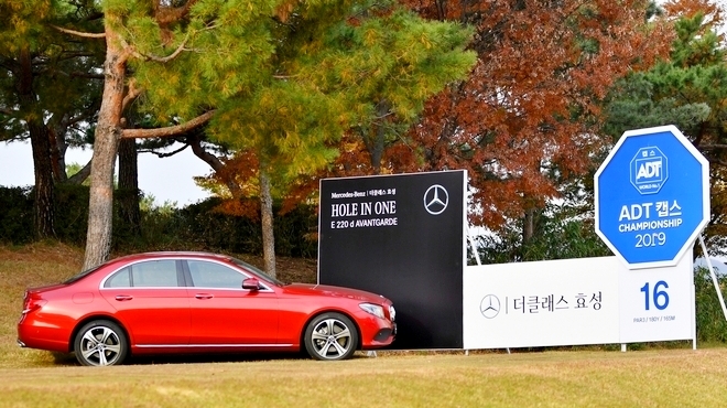 국내 수입차 1위 메르세데스-벤츠 공식 딜러인 더클래스 효성(대표이사 배기영) 스포츠 마케팅에 팔을 걷었다. 10일까지 충북 천안 우정힐수 컨트리클럽(CC)서 펼쳐지는 ‘ADT캡스 챔피언십’ 공식 후원사로 참여하는 것이다.‘E 220d’ 홀인원 경품·8대의 의전용 차량 제공…올해 지속 성장세 노려